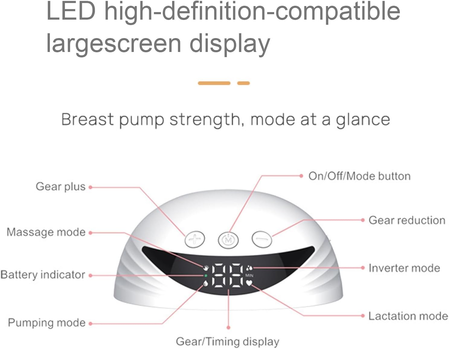 تصميم “هاندز-فري” (Hands-Free): مضخة لاسلكية بالكامل توضع داخل حمالة الصدر، مما يمنحكِ حرية حركة كاملة للقيام بمهامكِ اليومية أثناء الضخ.تجربة مخصصة (4 أنظمة و12 سرعة): تتيح لكِ التنقل بين أنظمة التدليك وتحفيز إنتاج الحليب مع 12 مستوى للسرعة، لتجدي التوازن المثالي بين الفعالية والراحة التامة.شاشة عرض ذكية (Intelligent Display): تظهر لكِ الشاشة بوضوح كمية الحليب المستخرجة، مستوى البطارية، وتوقيت الضخ، مع خاصية الإيقاف المؤقت بلمسة واحدة.أمان صحي مطلق (BPA Free): مصنوعة من السيليكون الغذائي الناعم والآمن تماماً على بشرة الأم وصحة الرضيع، مع تصميم سهل التفكيك والتعقيم لضمان أعلى مستويات النظافة.نظام “إير-تايت” المضاد للتسرب: نظام مغلق ومتطور يمنع تسرب الحليب تماماً ويضمن بقاء المضخة نظيفة، مما يسهل عملية الصيانة اليومية.صامتة وخفيفة الوزن: محرك هادئ جداً لا يسبب الإزعاج، وتصميم انسيابي يختفي تماماً تحت الملابس لضمان خصوصيتكِ في كل مكان.المواصفات التقنية:النوع: مضخة ثدي كهربائية محمولة (لاسلكية).الأنظمة: 4 أوضاع تشغيل مع 12 مستوى قوة.المادة: سيليكون غذائي آمن (بدون BPA).البطارية: قابلة للشحن (تظهر النسبة على الشاشة).الميزات: شاشة LED + مؤقت ذكي (20 دقيقة) + نظام مضاد للارتجاع.