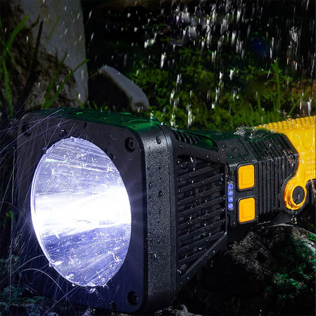 🔦 موديل W5187-1 مع أضواء ملونة 💡 مصباح P50 – قوة إضاءة عالية: – مستوى قوي: 1500 لومن – متوسط: 900 لومن ⏱️ مدة التشغيل: 3–4 ساعات 🔋 وقت الشحن: حوالي 4 ساعات ✨ الوظائف: – إضاءة رئيسية: بيضاء قوية/ضعيفة/وميض – ضوء خلفي: أزرق-أخضر تنفسي، أحمر-أصفر تنفسي، وميض متناوب 🎯 تصميم ذكي – مزود بخطافات وأضواء ملونة مخفية 🔌 عرض للطاقة – منافذ USB وType-C للشحن 🔋 البطارية: 4×18650 بسعة 6000 مللي أمبير (مُدمجة) 🧱 المواد: ABS + PS 📏 الحجم: 108×108×290 مم ⚖️ الوزن الصافي: 504 غرام / الوزن الكامل مع التغليف: 610 غرام 🖤 اللون: أسود 📦 الملحقات: كابل بيانات 📦 حجم الكرتون الخارجي: 58×47.5×62 سم (40 قطعة)