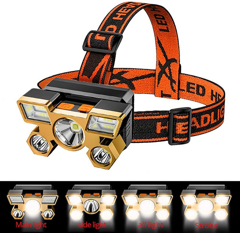 Lampe frontale portable rechargeable USB à 5 LED avec batterie intégrée