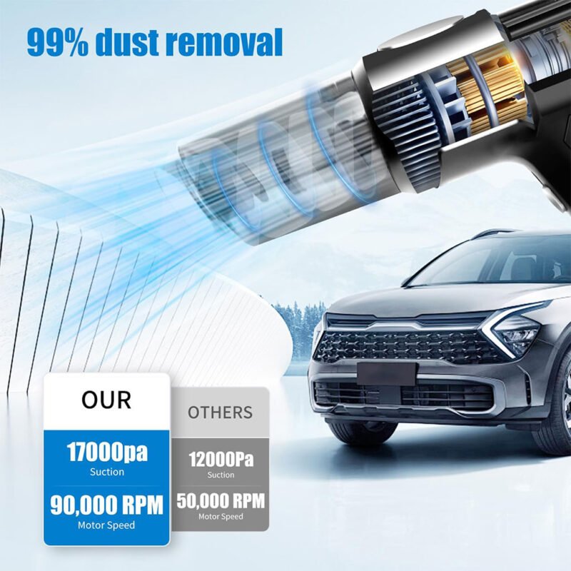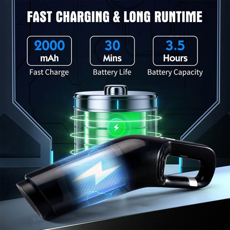 Aspirateur de voiture à main 21 000 Pa sans fil avec batterie rechargeable